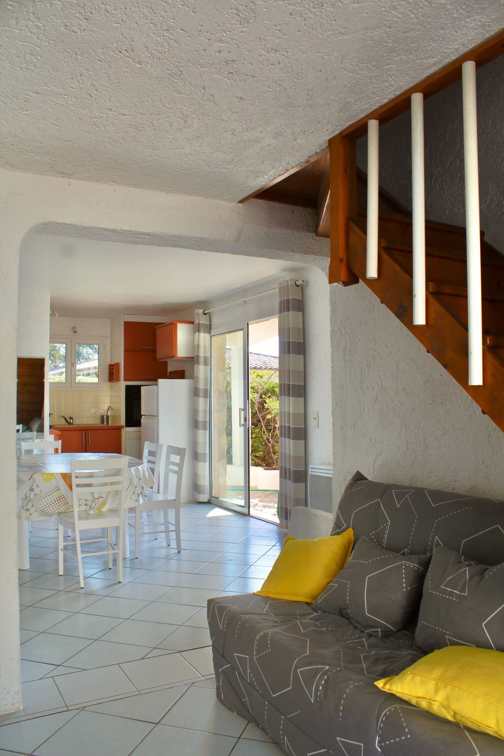 La cuisine entièrement équipée vous permet de préparer des repas délicieux à savourer en famille sur la terrasse équipée d'un store manuel pour vous protéger du soleil.