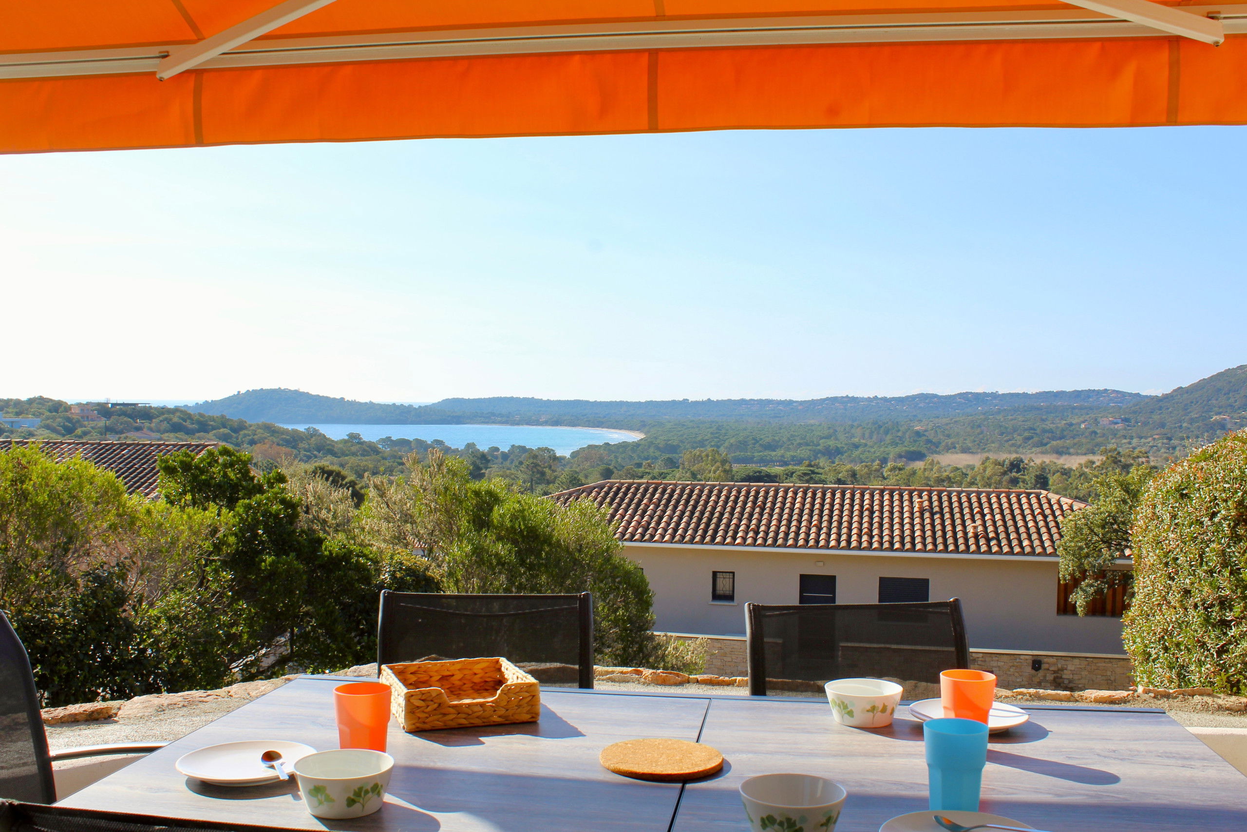 Dès votre arrivée, vous serez captivés par la vue imprenable sur la baie de Pinarellu et aurez une place de choix pour admirer les levées du soleil tous les matins.