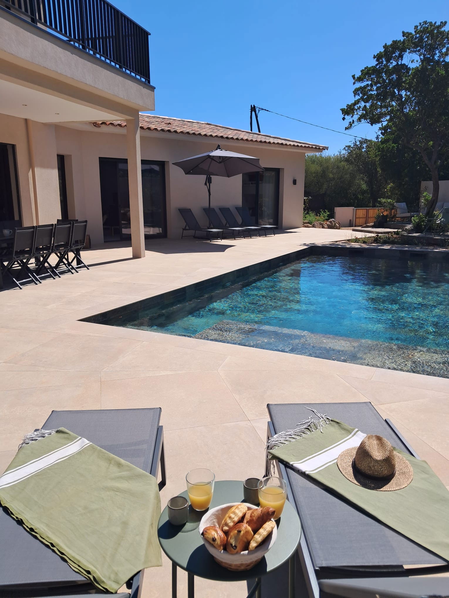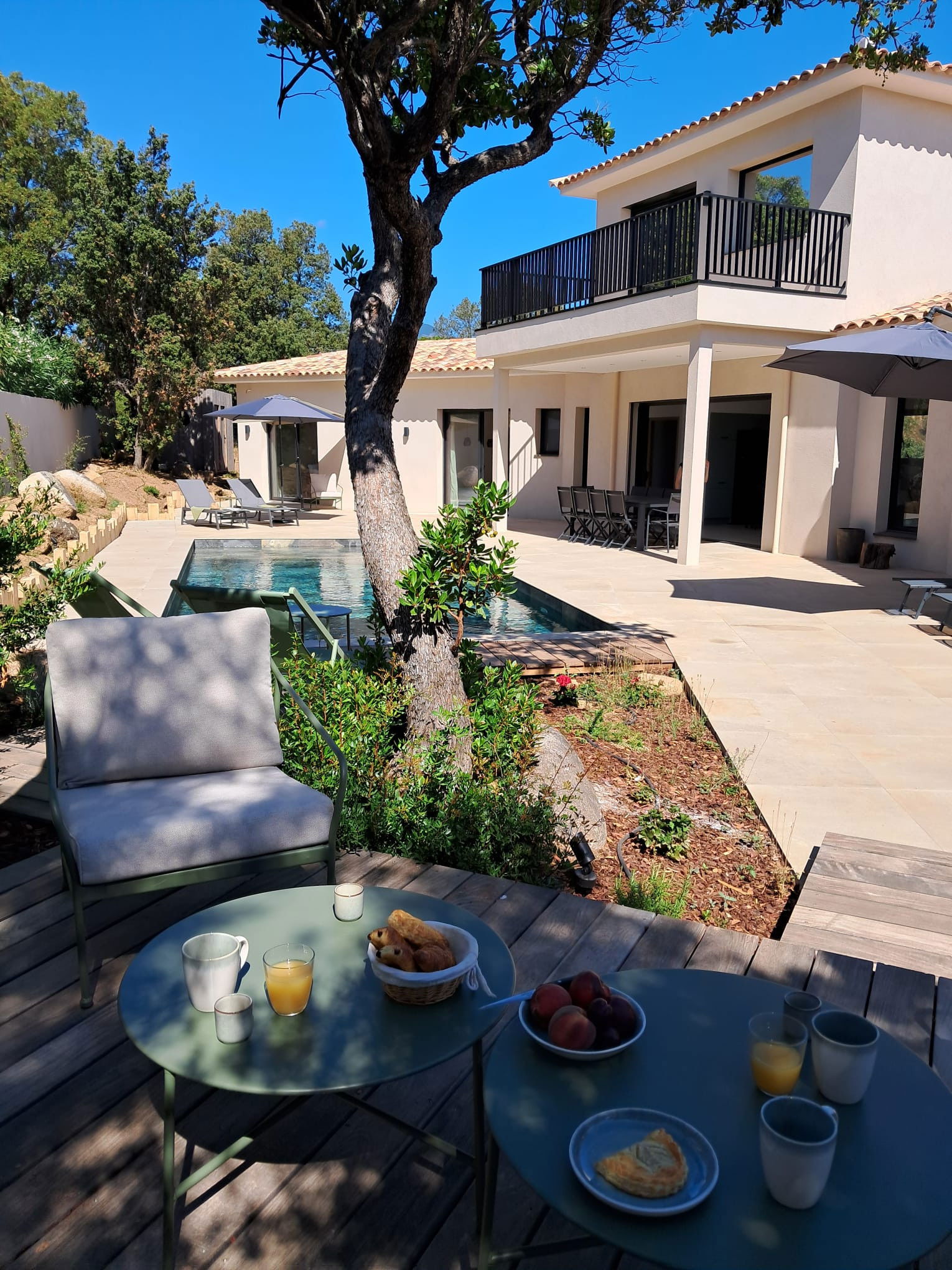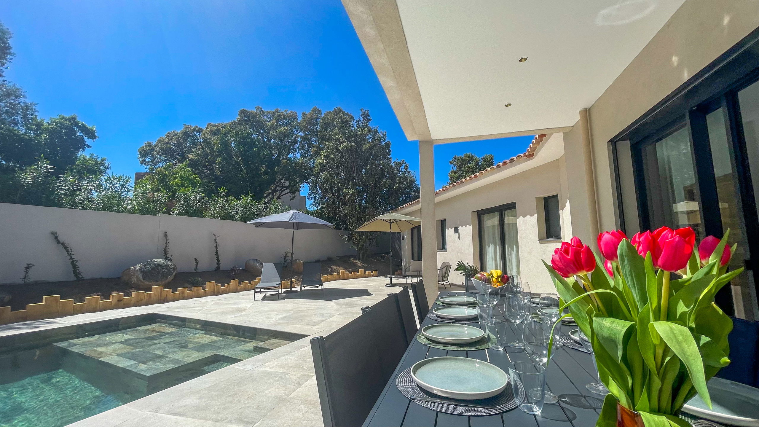 Belle villa de 4 chambres avec piscine privée située proche de la plage de Pinarello dans un quartier calme et résidentiel.