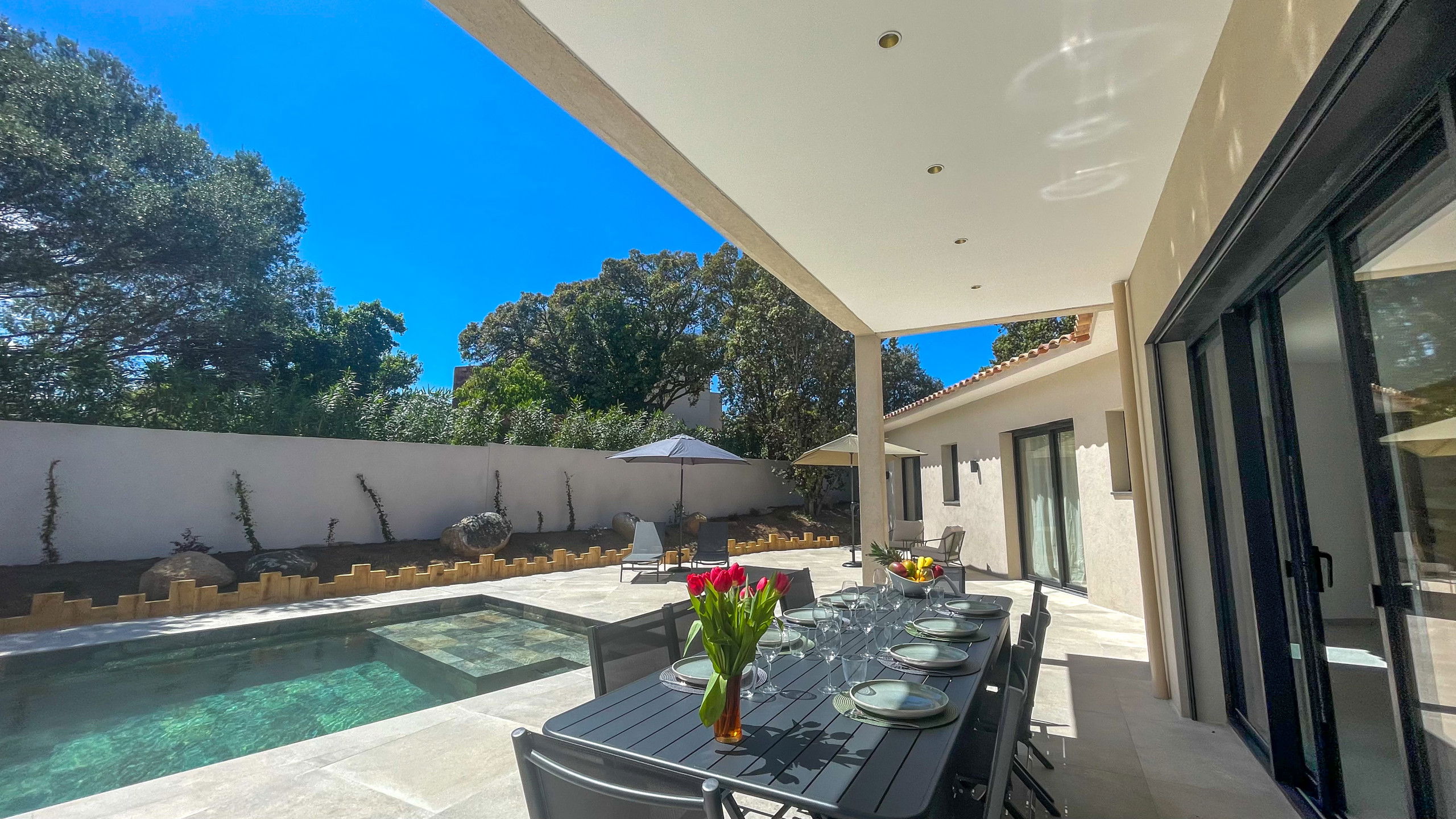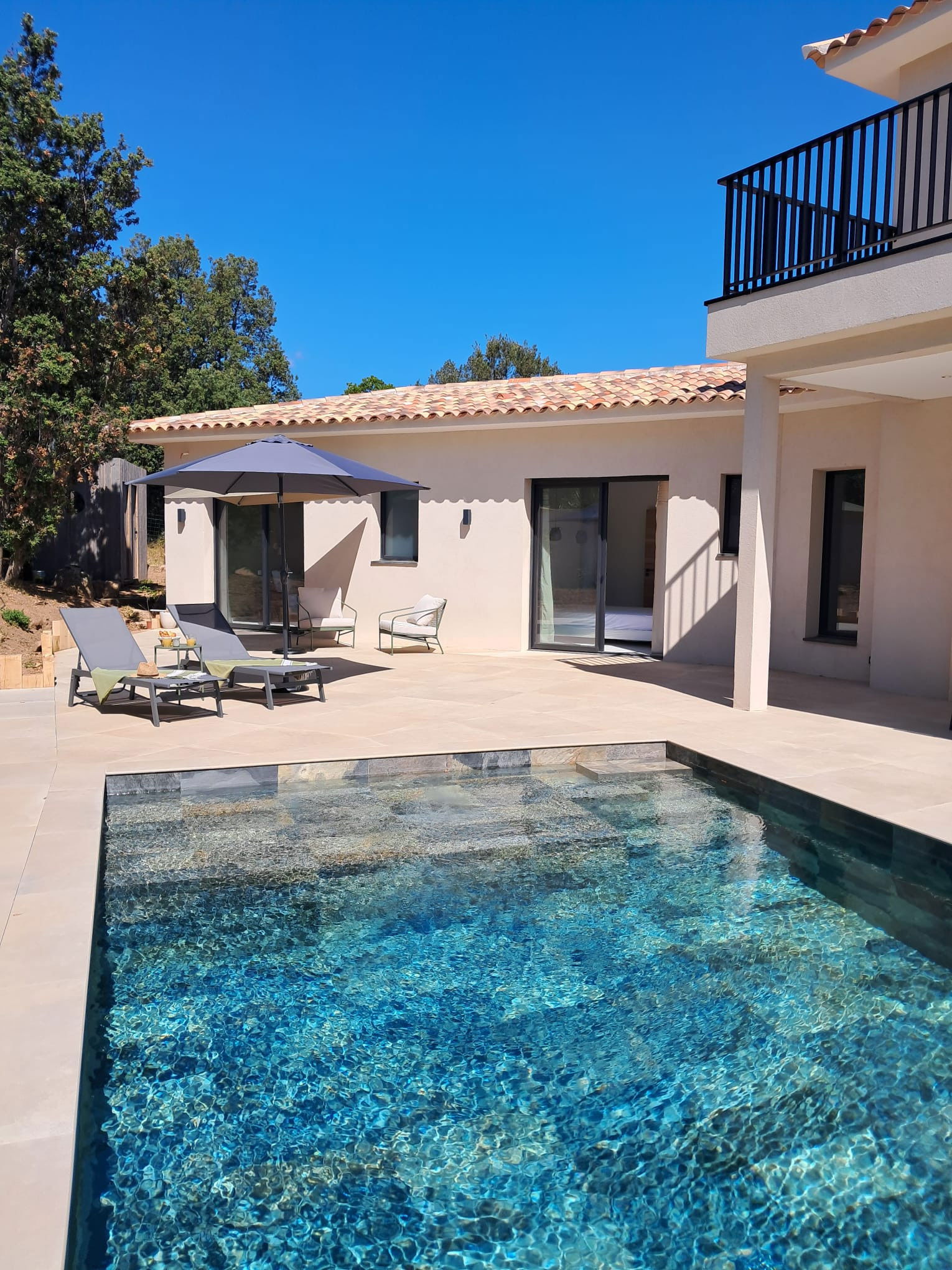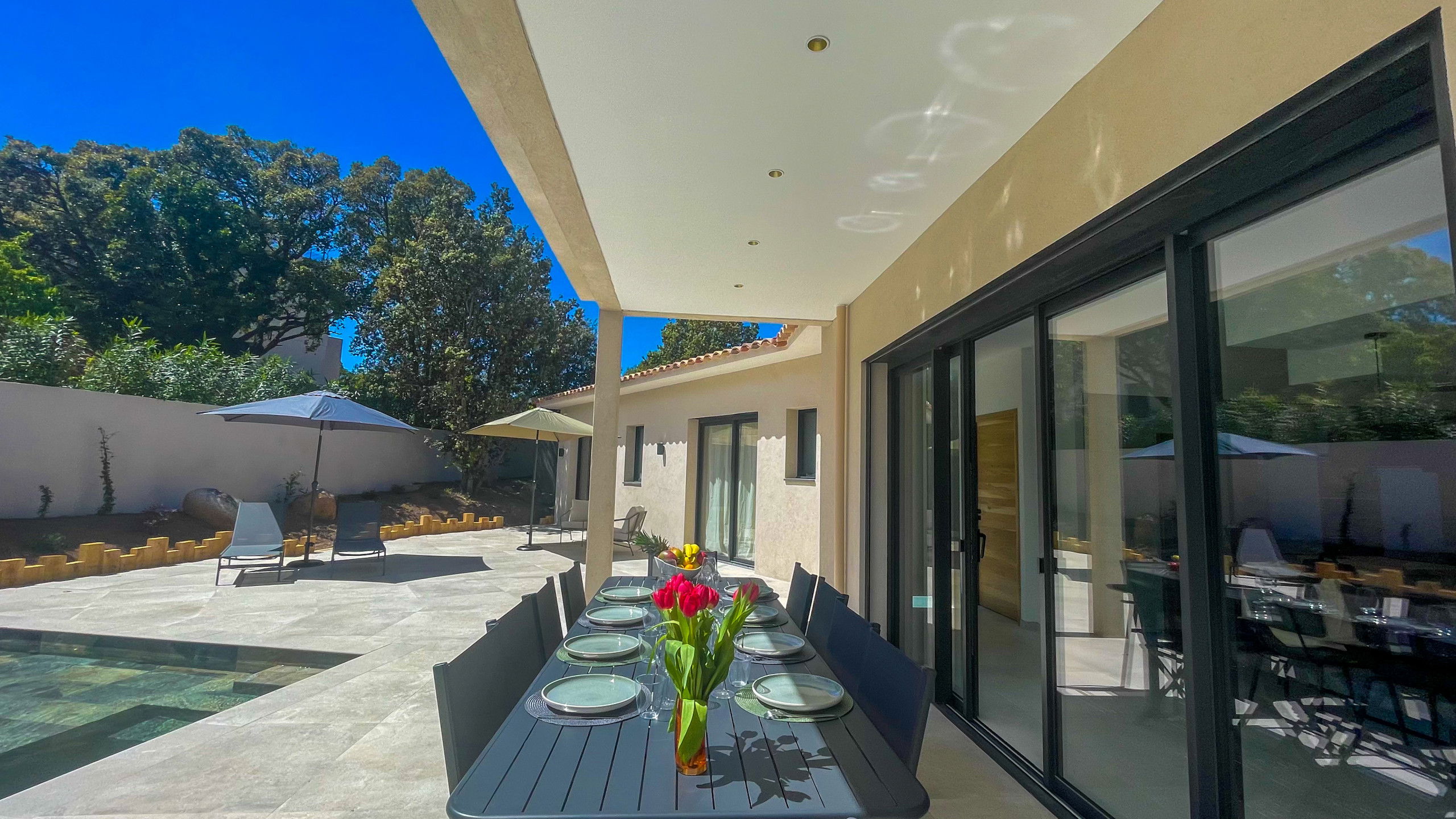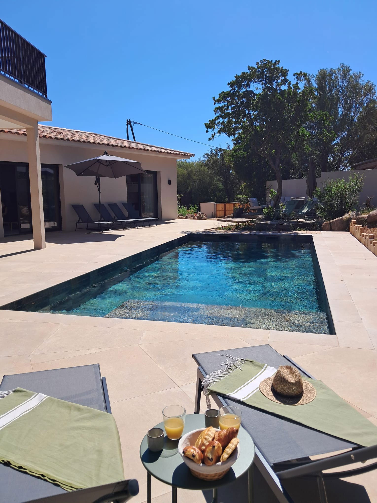 Belle villa de 4 chambres avec piscine privée située proche de la plage de Pinarello dans un quartier calme et résidentiel.