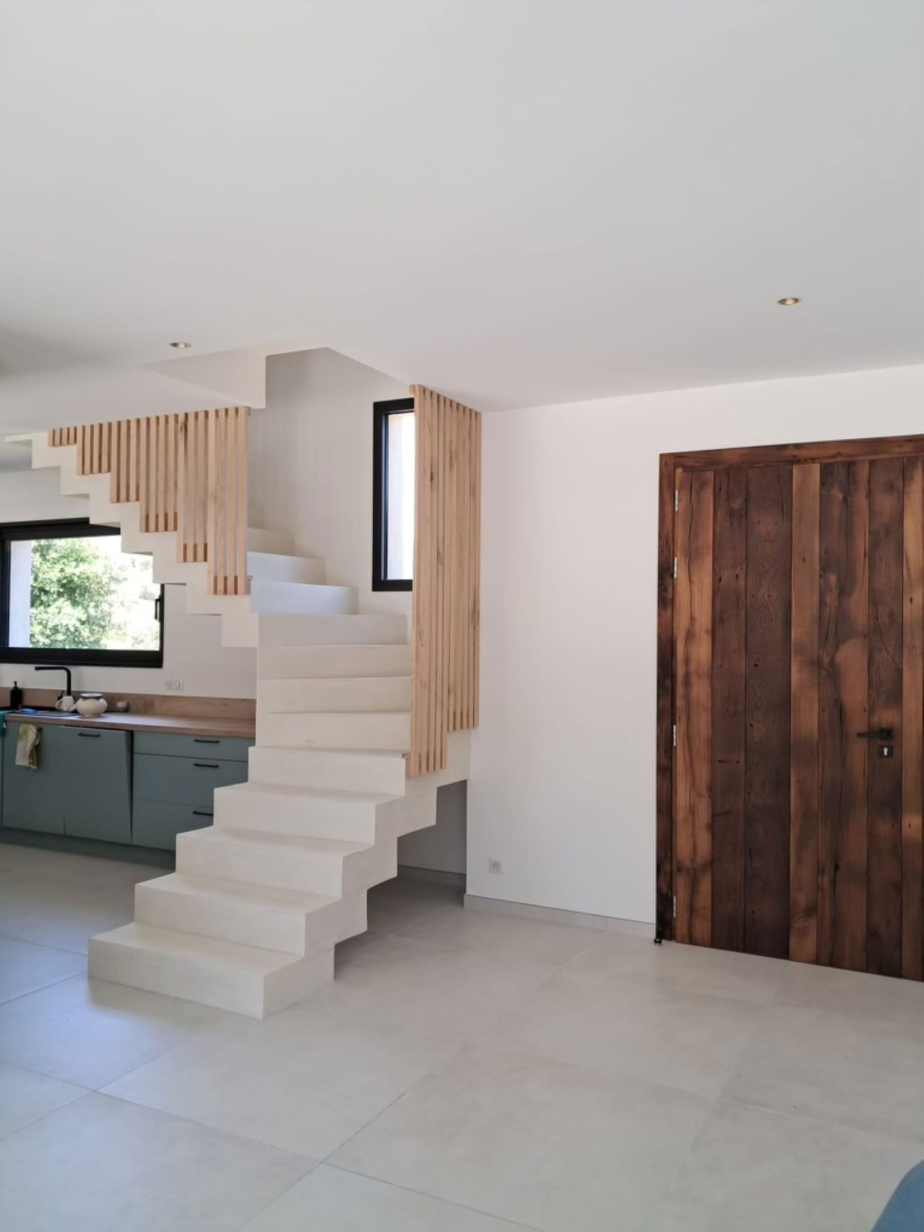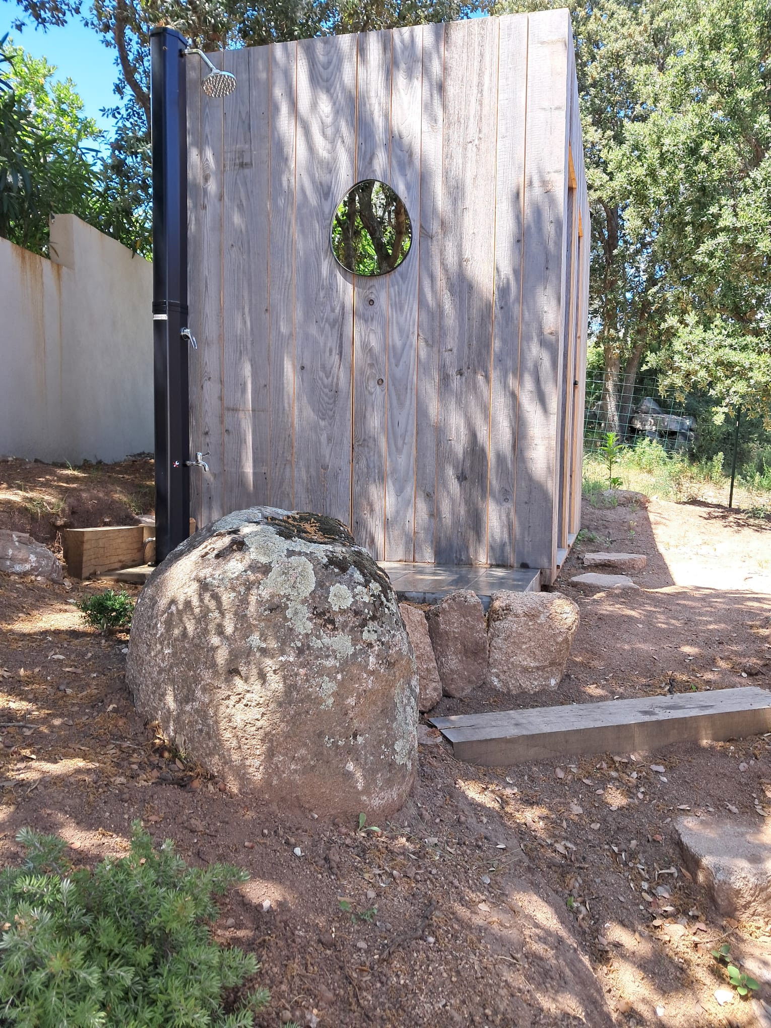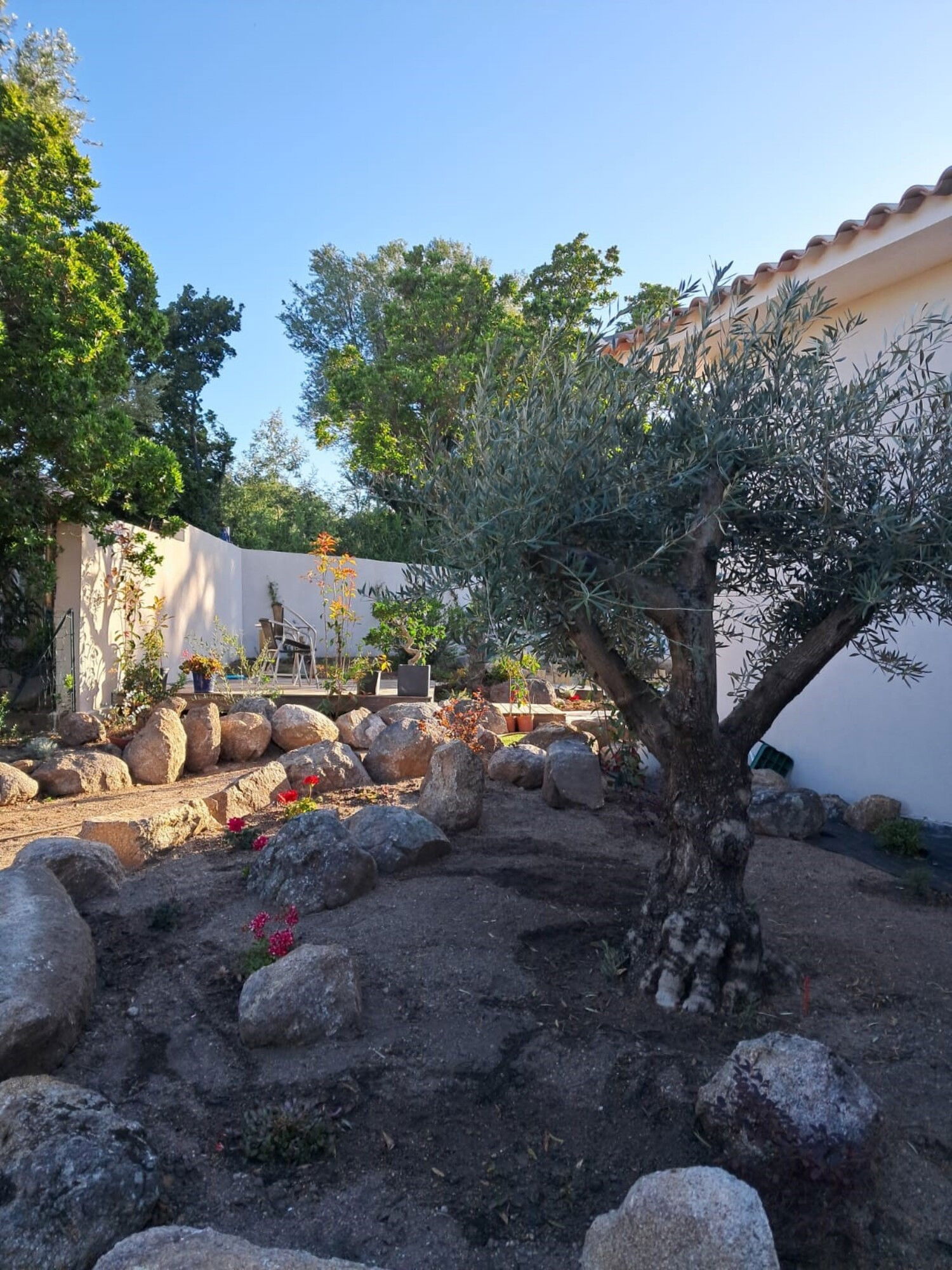Superbe espace extérieur avec une terrasse de 130m2, entièrement aménagé avec un coin barbecue/plancha.