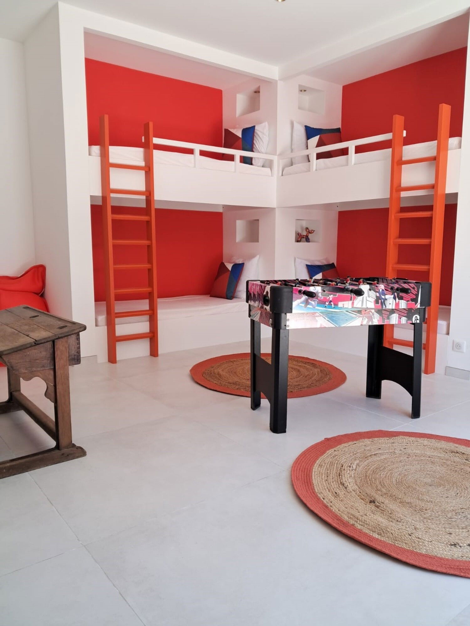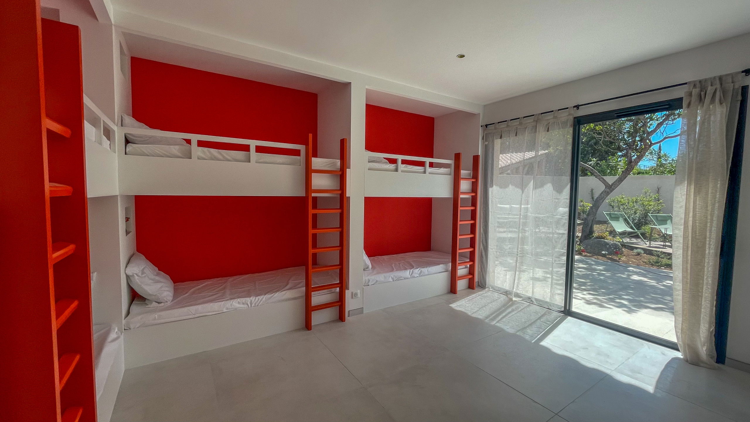 -Chambre 3 : dortoir avec 3 lits superposés en 80*190 avec salle de bain avec douche et wc et dressing ( total 6 lits)