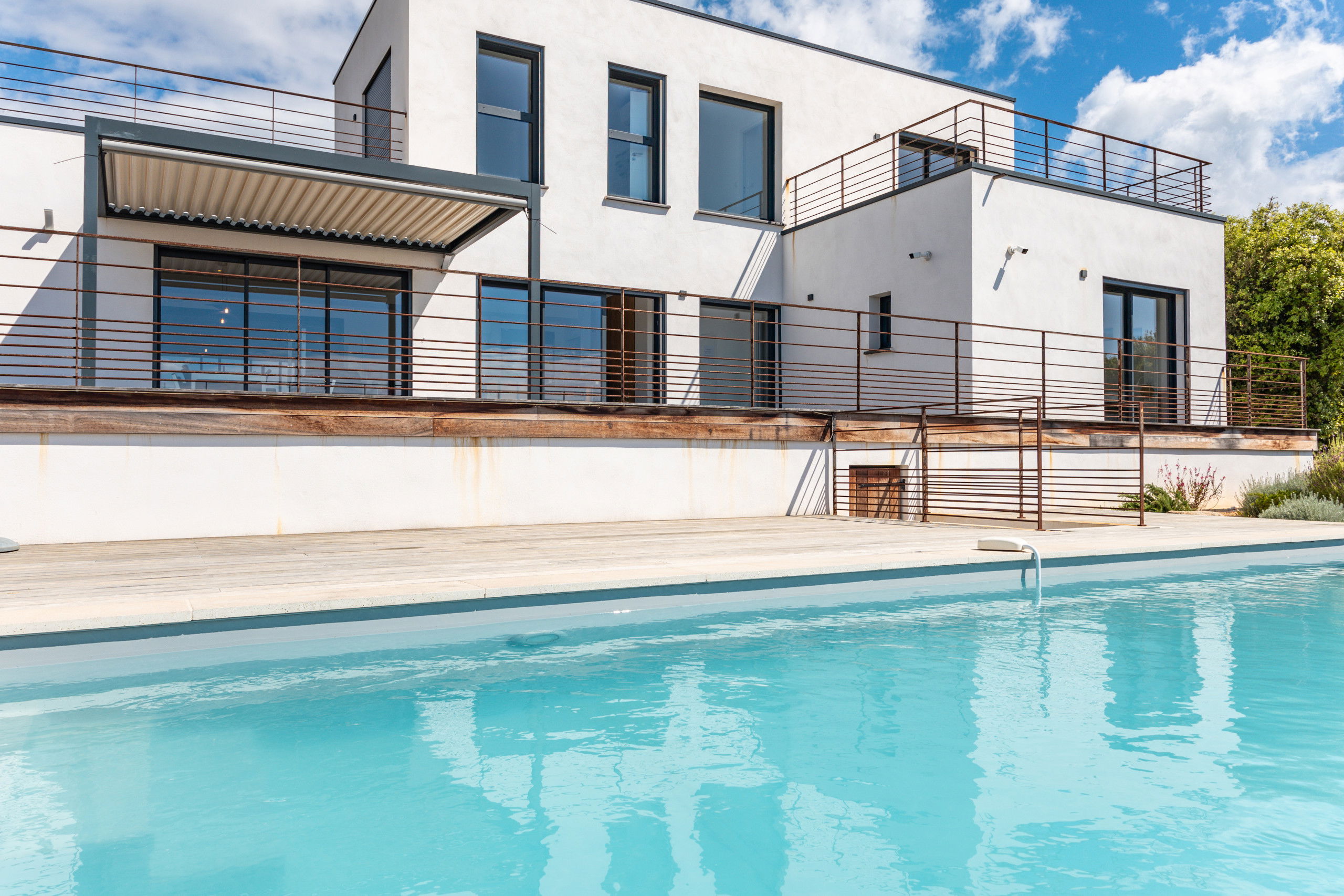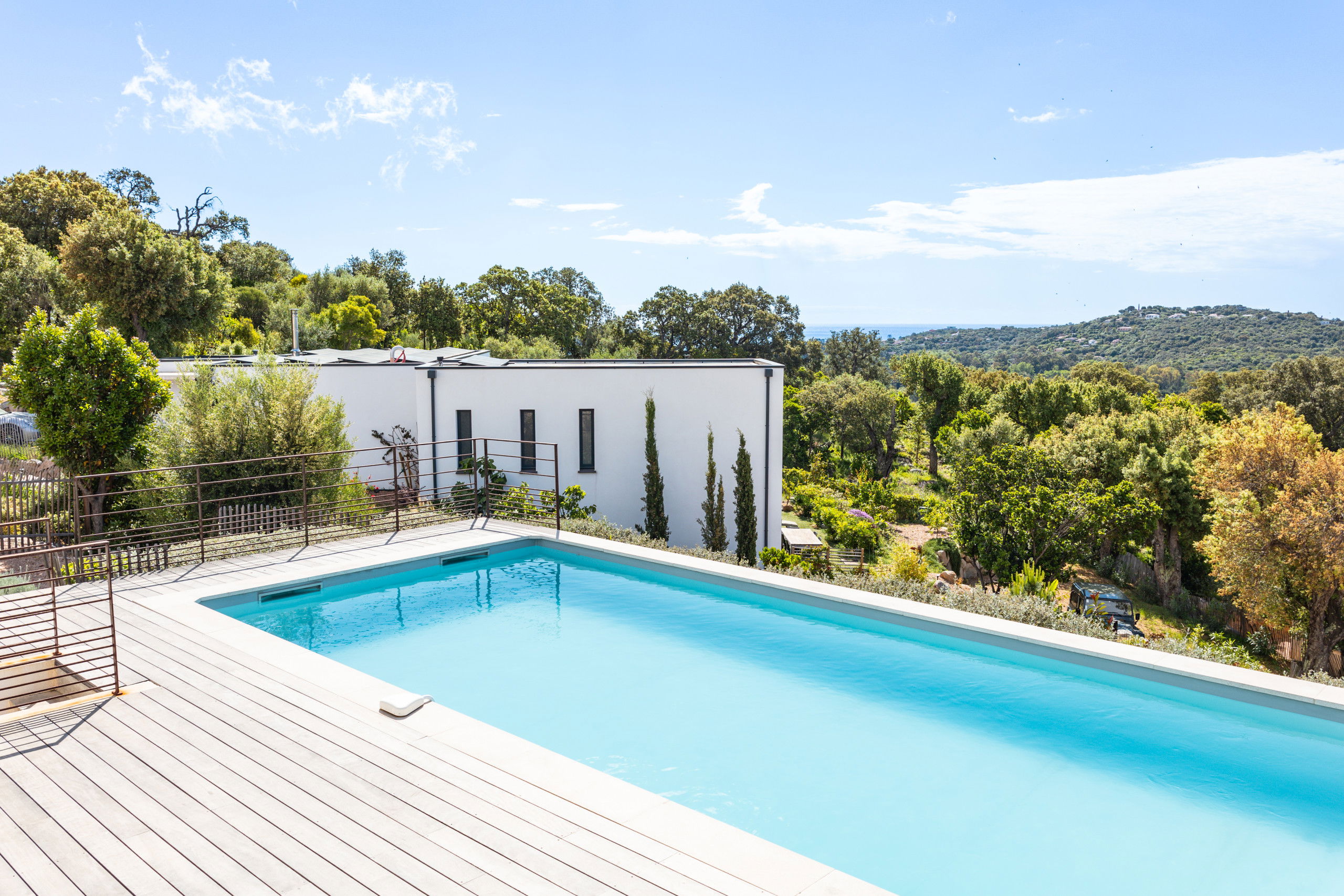 Piscine privée chauffée au sel (9m x 4m x 1,5m), avec une vue spectaculaire sur la Méditerranée.