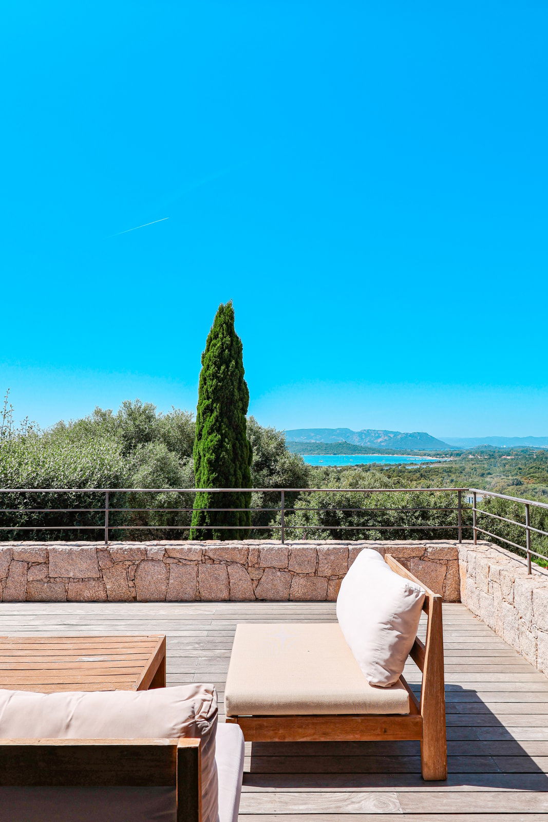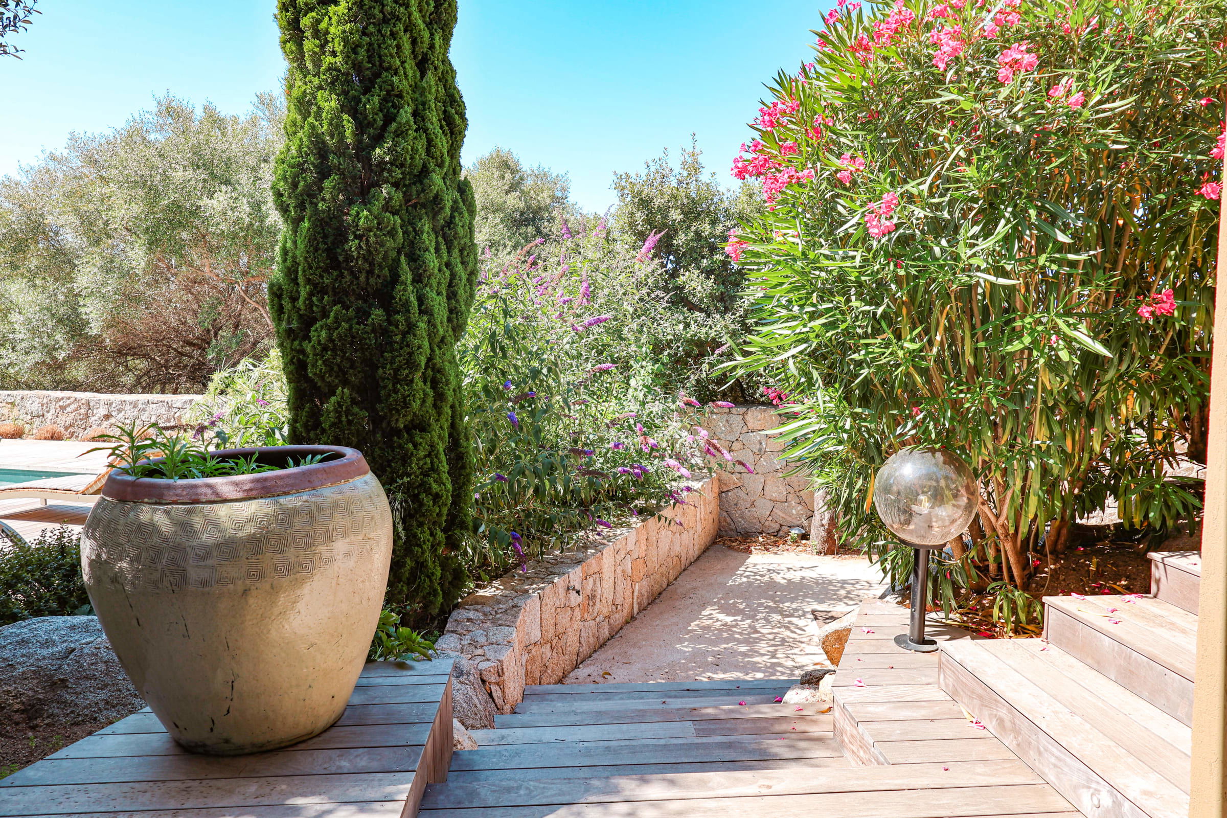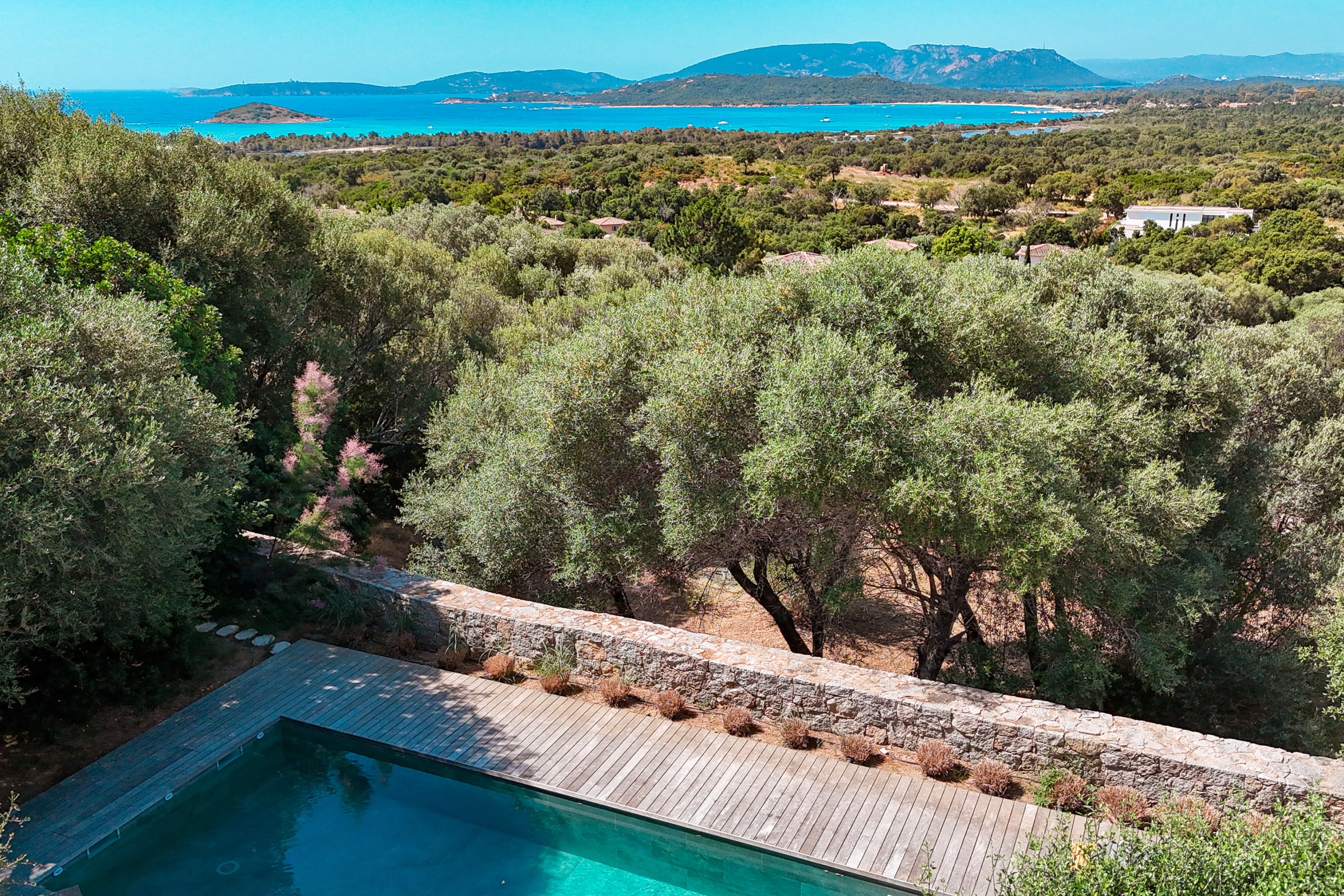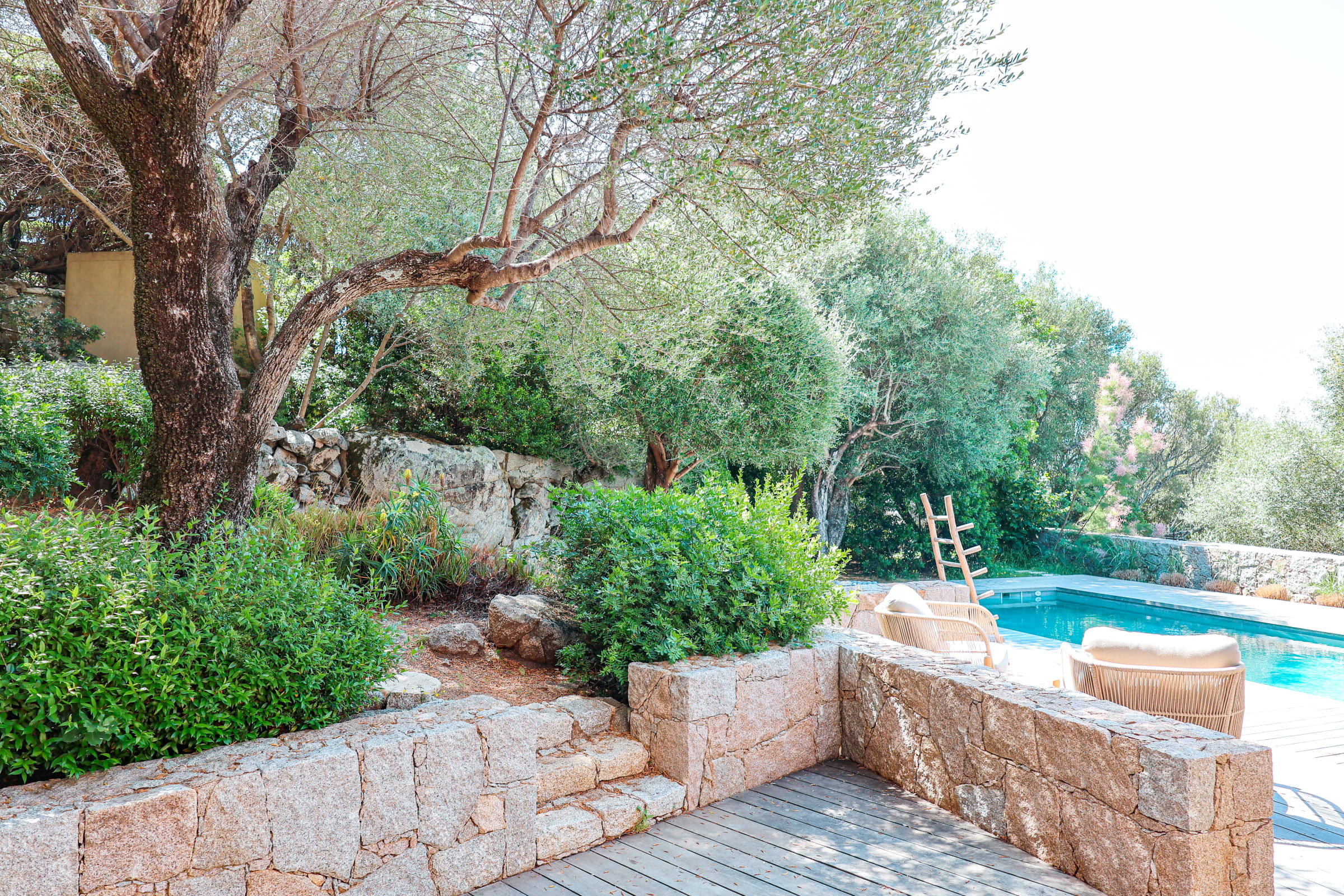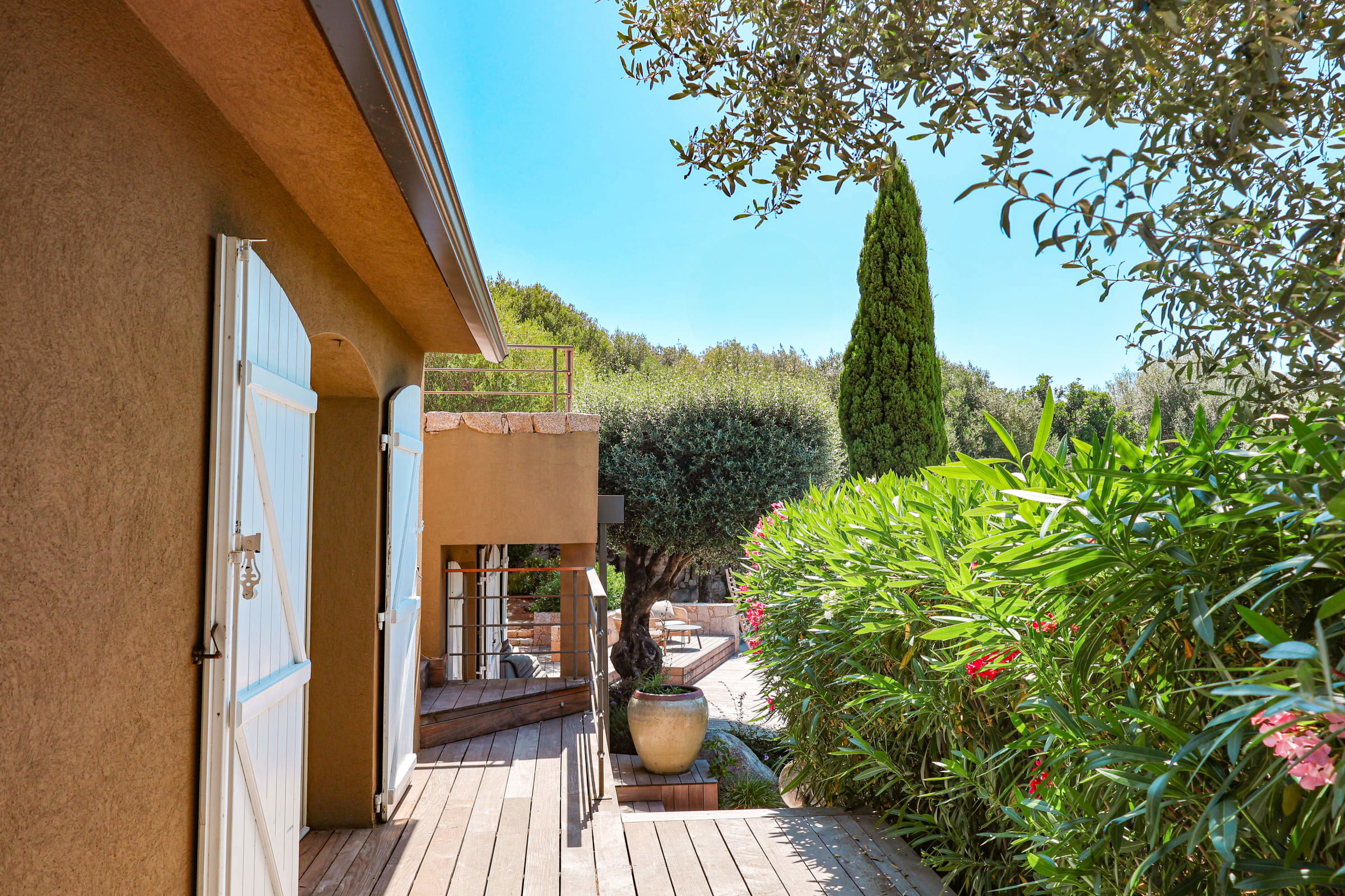 La villa possède un bel extérieur avec des terrasses en IPE sur différents niveaux, permettant de circuler simplement des espaces communs vers les chambres et la piscine.