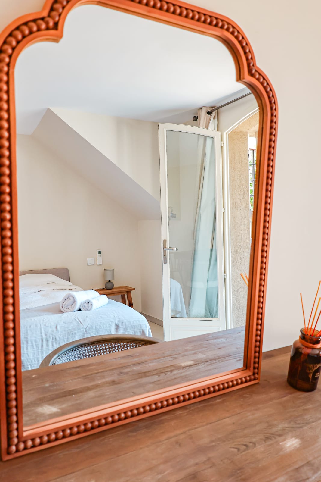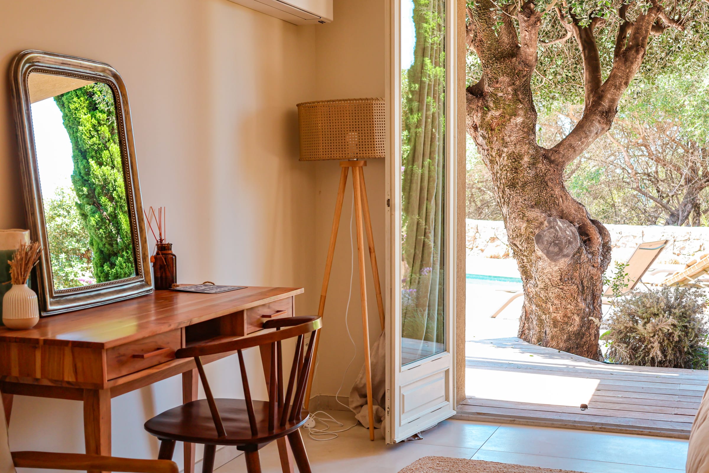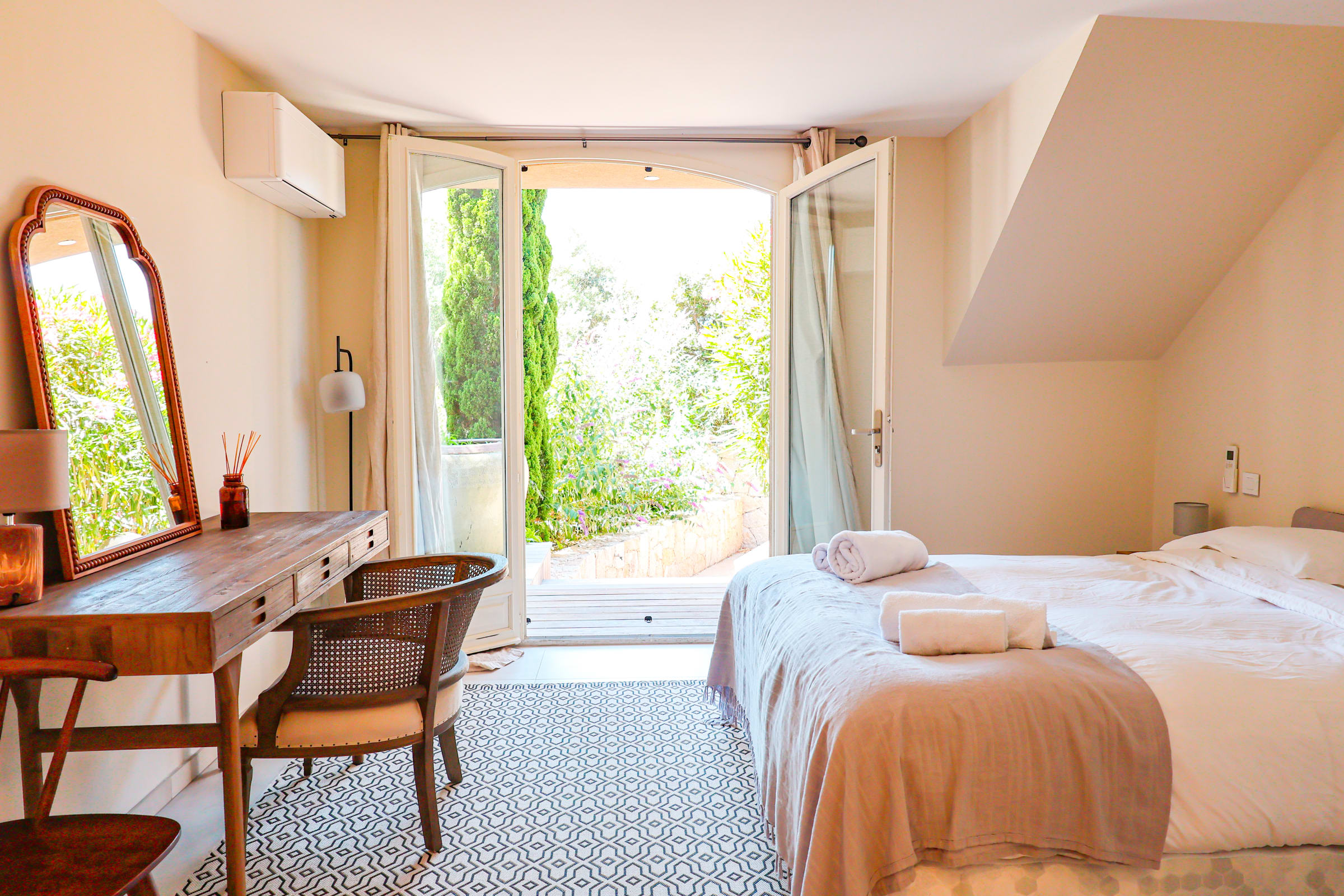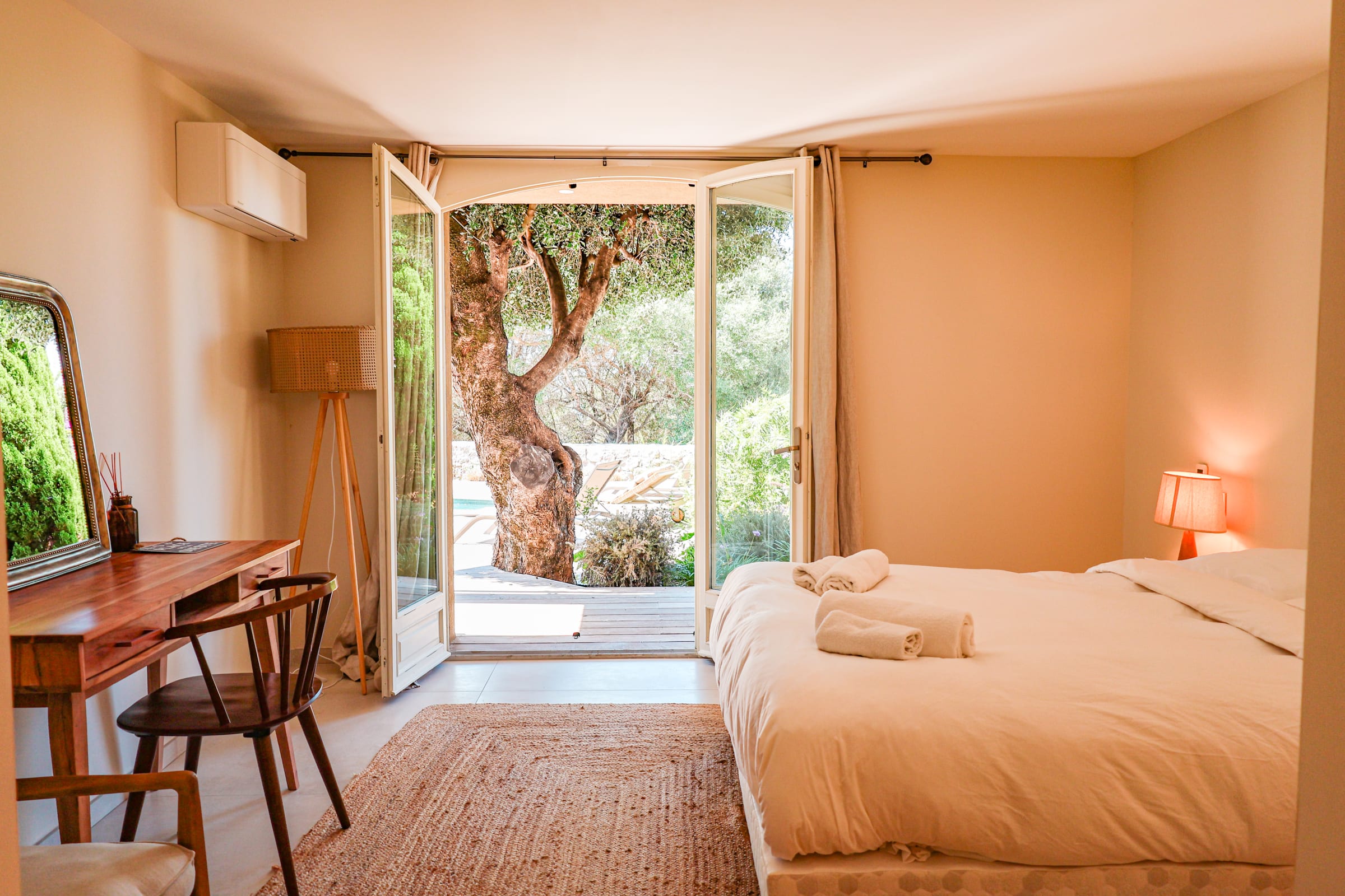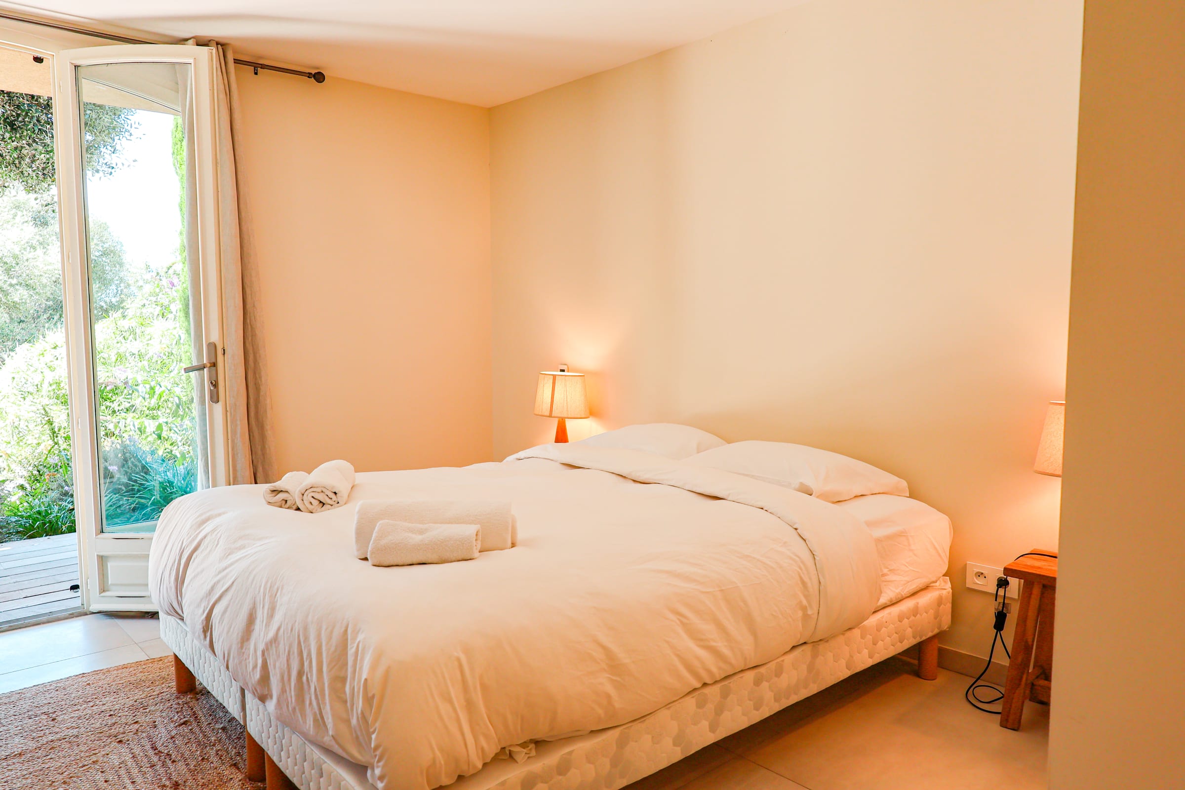 - Chambre 5 : Lit Queen Size (160*200) +1lit simple (90*200) avec salle de douche, WC et dressing. Accès piscine et terrasse.
