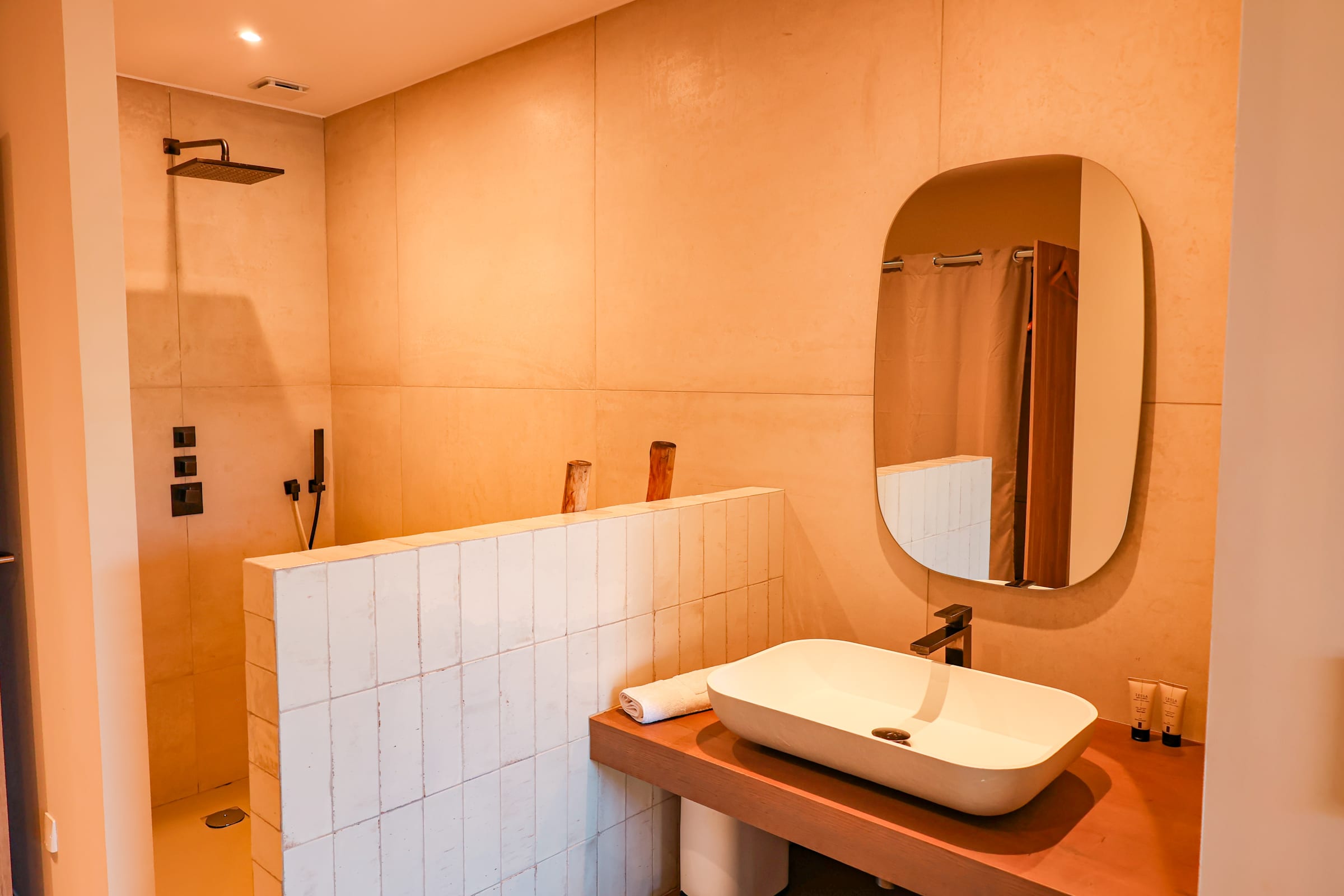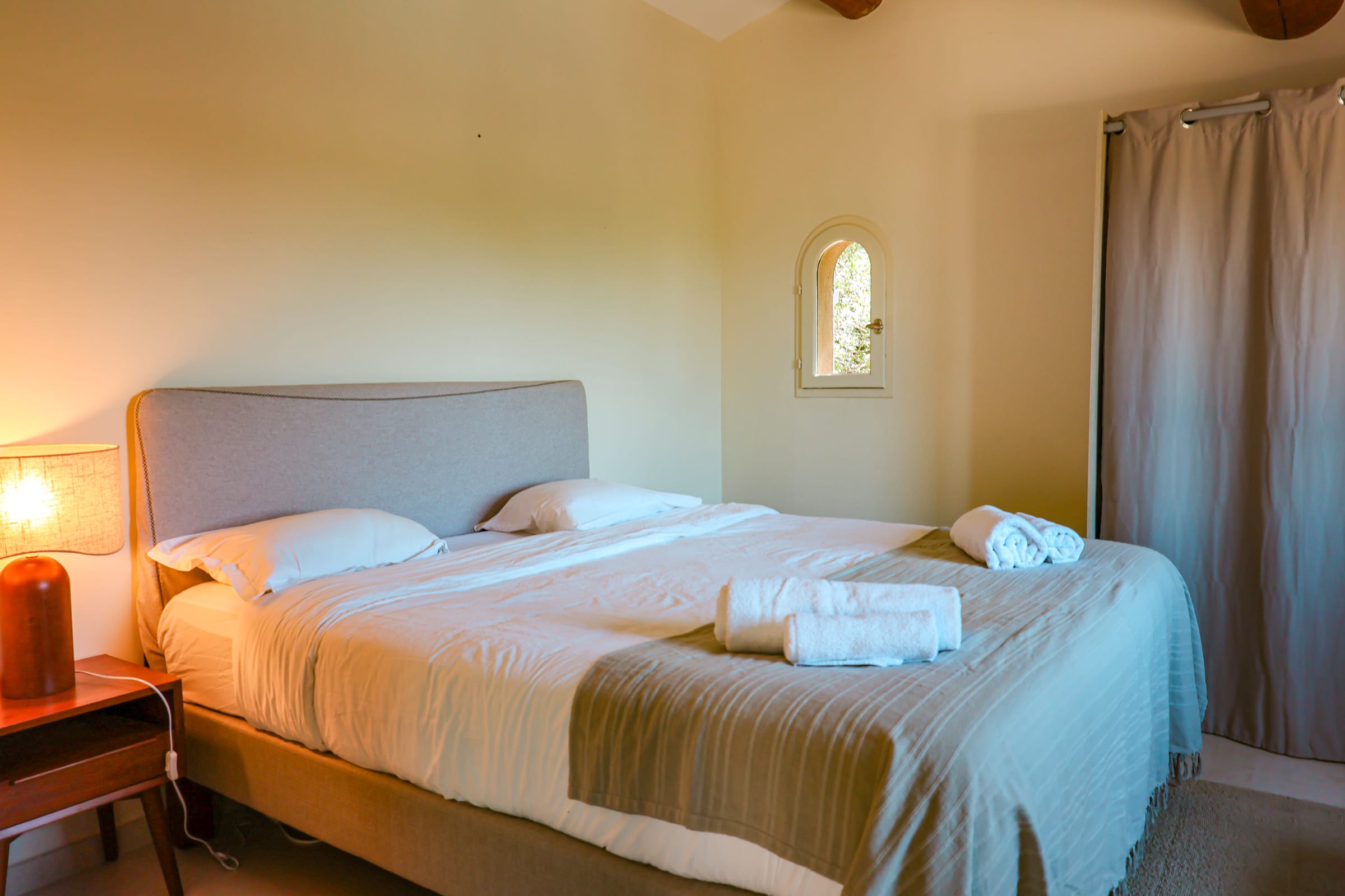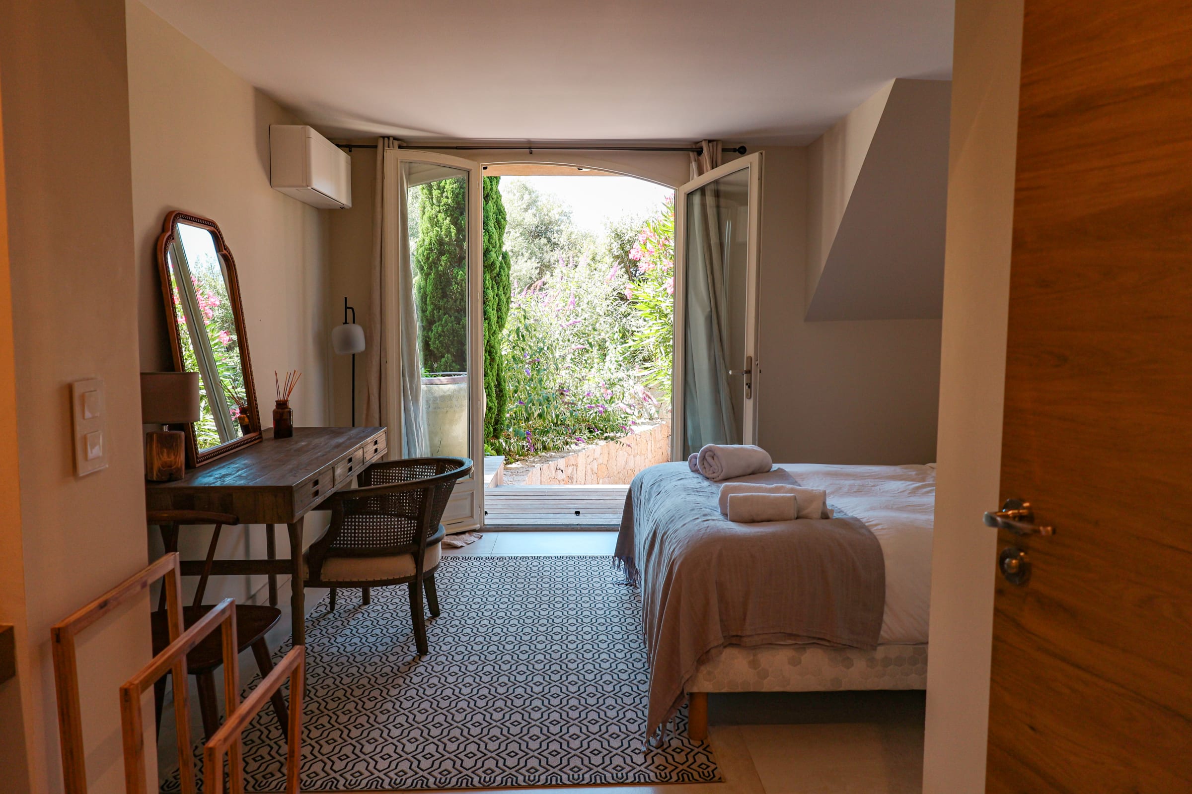 - Chambre 4 : Lit Queen Size (160*200) avec salle de douche, WC et dressing. Accès piscine et terrasse.