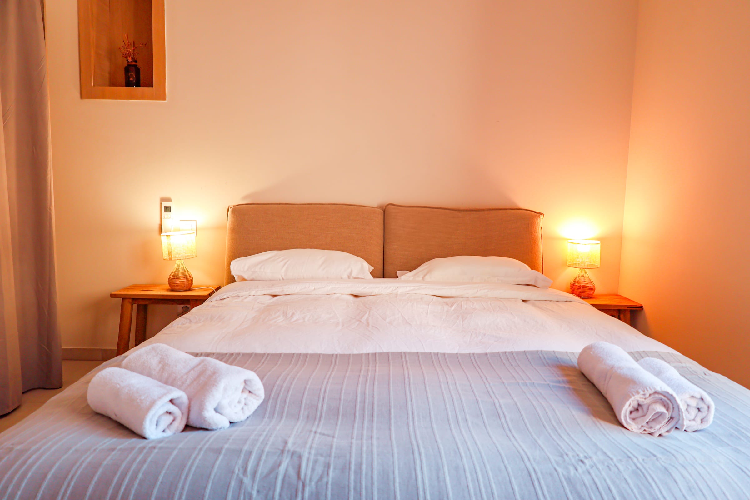 - Chambre 2 : Lit King Size (180*200) avec salle de douche, WC et dressing. Vue mer.